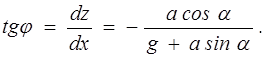 При горизонтальном движении сосуда (a = 0) тангенс угла наклона свободной поверхности к горизонту равен