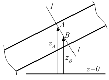 где рА, рB — соответственно давления в произвольных точках А и В (с вертикальными координатами za, zb) этого сечения; g — ускорение свободного падения. В случае плавно изменяющегося течения равенство (2.3) выполняется приближенно.