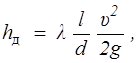 где l — коэффициент гидравлического сопротивления (гидравлического трения); l — длина трубы; d —ее внутренний диаметр; u —средняя скорость потока.