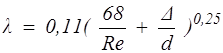 2. Зона шероховатых труб (10d/D < Re £ 500d/D; l=l (Re, D/d):