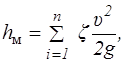 где п —число местных сопротивлений; u —средняя скорость потока за местным сопротивлением.