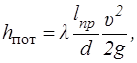 Если требуется определить не h пот, а потери давления Δр пот, то используют формулу