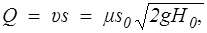 Коэффициент расхода представляет собой отношение действительного расхода Q к теоретическому: