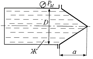 6. Определить силу давления на коническую крышку горизонтального цилиндрического сосуда диаметром D, заполненного жидкостью Ж