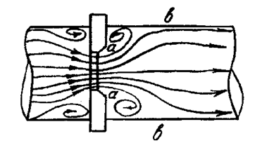 Рис.7.1. Кинематическая структура потока в зоне местного сопротивления диафрагмы