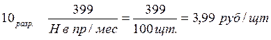 10 разр. = 100 ´ 3,99 = 399 руб.