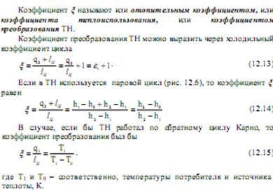 Насыщенный пар рабочего тела адиабатно сжимается компрессором (К) (процесс 1-2) от давления р1 до давления р2. Из компрессора пар поступает в охладитель (О), где он охлаждается и конденсируется при р2 = const (процесс 2-3). Полученная жидкость дросселируется в редукционном вентиле (РВ) с уменьшением температуры и давления. Процесс дросселирования 3-4 является необратимым и в диаграмме T,s изображается условно. В процессе 3- 4 жидкое рабочее, частично испаряясь, превращается во влажный