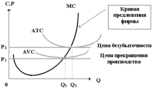 Рисунок 29. Кривая предложения конкурентной фирмы в коротком периоде