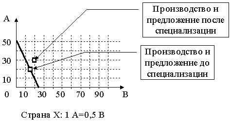 продать его за 2,5 единицы товара В. Начнется отток товара А из страны Х в