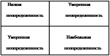 изменение структуры организации — если неопределенность мала, организация может выбрать более жесткую структуру с формализованными процедурами управления (механистическая структура). При значительной неопределенности структура должна быть гибкой, позволяющей приспосабливаться к быстрым изменениям (органическая структура);