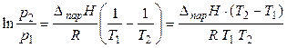 Если принять Dпар Н постоянной величиной (что возможно для небольших температурных интервалов), то после интегрирования уравнения (21) получаем интегральную форму уравнения Клапейрона-Клаузиуса: