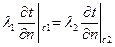 4) Граничные условия IV рода формируются на основании равенства тепловых потоков, проходящих через поверхность соприкосновения тела с окружающей средой или поверхность соприкосновения трердых тел, по закону теплопроводности, т.е.