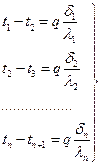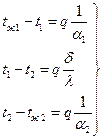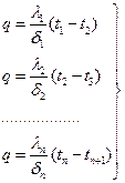 Т.к. мы рассматриваем стационарный процесс, то плотность теплового потока для всех слоев будет одинакова, и в соответствии с (30) можно записать: