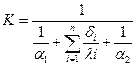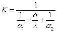 Отсюда коэффициент теплопередачи для многослойной стенки: