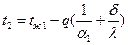 где Σδi/λi - термическое сопротивление теплопроводности многослойной стенки.