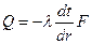 Для нахождения теплового потока, проходящего через цилиндрическую поверхность F, воспользуемся законом Фурье: