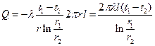 Линейная плотность теплового потока ql - это количество тепла, которое проходит в единицу времени через стенку трубы длиной в 1 м в радиальном направлении.