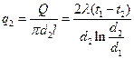 отнести к внутренней или наружной поверхности стенки, то получим плотность теплового потока, Вт/м2, отнесенную к единице соответствующей поверхности трубы: