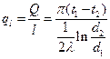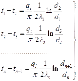 При стационарном тепловом режиме линейная плотность теплового потока ql будет одинаковой для всех слоев, тогда: