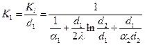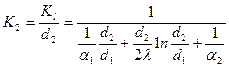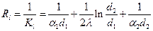1/2λ*ln(d2/d1) - линейное термическое сопротивление теплопроводности стенки.