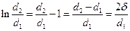 Величину ln(d2/d1)разложим в ряд: