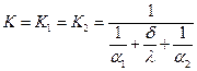 Т.е. получили выражение коэффициента теплопередачи для плоской стенки (см. уравнение 38).