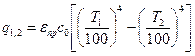 Чтобы найти q1,2, надо из собственного излучения первой пластины Е1 вычесть, во-первых, то, что возвращается и снова поглощается от собственного излучения и, во-вторых, ту энергию, которая поглощается из излучения второй поверхности, т.е. найти результирующее излучение для первой поверхности:
