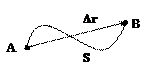 Пусть при своем движении тело переместилось из точки А в точку В. Величину изменения положения тела можно определить как расстояние от точки А до точки В. Расстоянием между двумя точками называется длина отрезка прямой, соединяющего эти точки. Определяемое таким образом пройденное расстояние называется перемещением. Причем, перемещение – векторная величина. Перемещением - Δr - называется вектор, начало которого совпадает с начальным положением тела (точка А), а конец - с конечным положением (точка В). Однако, тело из начальной точки в конечную перемещалось не обязательно по прямолинейной траектории. Поэтому существует еще одна величина, характеризующая величину изменения положения тела – путь. Пройденным путем - S - называется длина траектории перемещения тела. Путь – скалярная и всегда положительная величина. Причем путь всегда больше или равен модуля вектора перемещения. Так если в результате движения тело вернулось в исходное положение, то есть точки А и В совпадают, то перемещение тела равно нулю, а путь больше нуля.