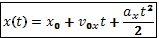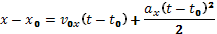 Эта формула представляет собой зависимость координаты х от времени для равноускоренного движения и является еще одной основной формулой. х0 – начальная координата. Аналогично записываются зависимости координат y и z от времени. В векторном виде эта зависимость имеет такой вид: