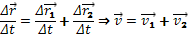 Пусть имеется две системы отсчета. Одну из них мы будем считать неподвижной, а вторая пусть движется относительно неподвижной. Пусть имеется движущееся тело. Пусть нам известно, что за некоторое время Δt тело переместилось относительно движущейся системы отсчета на величину Δr1, а подвижная система отсчета за то же время переместилась относительно неподвижной системы на величину Δr2. Тогда суммарное перемещение тела относительно неподвижной системы отсчета, очевидно, будет равно: Δr = Δr1 + Δr2. Разделим это равенство на Δt и получим: