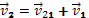 Эту формулу можно записать в другом виде, часто очень полезном при решении задач. Пусть имеется два движущихся тела. Известно, что скорость первого тела относительно неподвижной системы отсчета равна v1, а скорость второго тела относительно неподвижной системы отсчета равна v2. Чему равна скорость второго тела относительно первого? В этом случае следует связать с первым телом подвижную систему отсчета. Тогда скорость v1 будет представлять собой скорость подвижной системы отсчета относительно неподвижной, то есть переносную скорость. Скорость v2 будет представлять собой скорость тела относительно неподвижной системы отсчета, то есть абсолютную скорость. А скорость второго тела относительно первого (обозначим ее v21) будет представлять собой скорость тела относительно подвижной системы отсчета, то есть относительную скорость. Запишем формулу сложения скоростей: