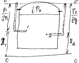 Будем перемещать эту точку вниз, при этом давление изменяется подчиняясь линейному закону. В точке «О» при h = 0, Ризб = 0, а в точке «В»: Р = ρgh.
