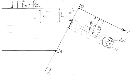 Наметим на рассматриваемой плоскости произвольную точку «m», заглубленную под уровень жидкости на величину «h» с координатой «y», где h = y sin d.