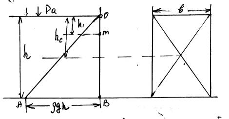 На эту стенку будем рассматривать действие избыточного давления, т.к. на поверхности действует атмосферное давление. Наметим на стенке точку «m», давление в которой: Р = ρgh.