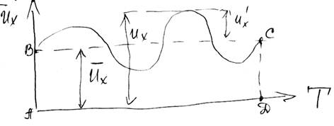 u‾x – определенная скорость, равная высоте прямоугольника АВСD, равновелиного площади, заключенный между пульсационной кривой..
