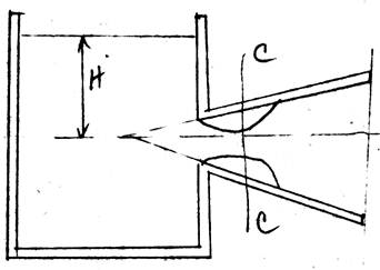 а в сечении 2-2 давление равно атмосферному, из закона сохранения энергии, следует, что в сечении 2-2 давление меньше атмосферного. Т.о. можно делать вывод, что в сечении С-С выкуум. Вакуум зависит от напора Н.