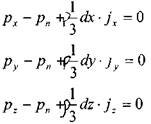 отброшенной массы жидкости на выделенный отсек заменим силами, которые обеспечат равновесие в покоящейся жидкости. При такой замене мы сделали некоторое допущение, ввели сосредоточенные силы, действующие на грани отсека. Однако это допущение мож-. но считать справедливым ввиду малости отсека. Тогда для обеспечения равновесия на отсек жидкости должны действовать силы давления нормальные к граням отсека