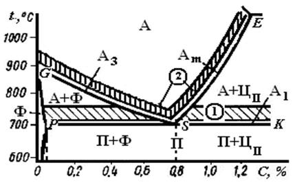| Сталь | Доэвтектоидная | Эвтектоидная | Заэвтектоидная |