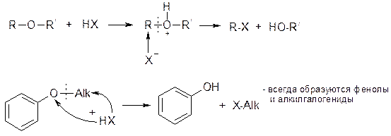 Реакция идет только с концентрированными кислотами (низкая основность эфиров): HI > HBr > HCl > H2SO4.