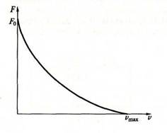 Рис. 3.. Взаимосвязь силы, развиваемой мышцей при сокращении, со скоростью сокращения мышцы.(кривая Хилла)