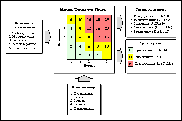 | Приемлемые | 1 ≤ R ≤ 4 | Рассматриваются к принятию. Периодически переоценивается уровень каждого риска. |