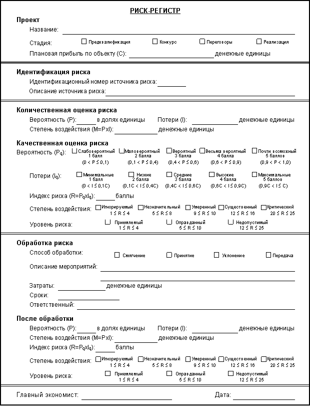 | Вид риска | Индекс риска (R) | Уровень риска |