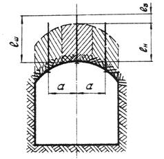 Расчетные схемы, используемые для определения усилий и деформаций в конструкциях крепи, должны отражать действительные условия работы выработки и особенности взаимодействия крепи и пород. Например, расчет параметров штанговой крепи производится по схеме (рис.1), согласно которой штанги прикрепляют породу, расположенную в пределах зоны возможного обрушения к устойчивой зоне породного массива и рассчитываются на восприятие нагрузок, вызванных весом пород в кровле и стенках выработки.