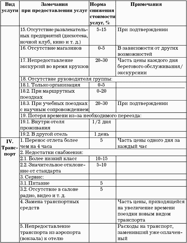 Таблица 3 Франкфуртская таблица по снижению цен за туристские поездки
