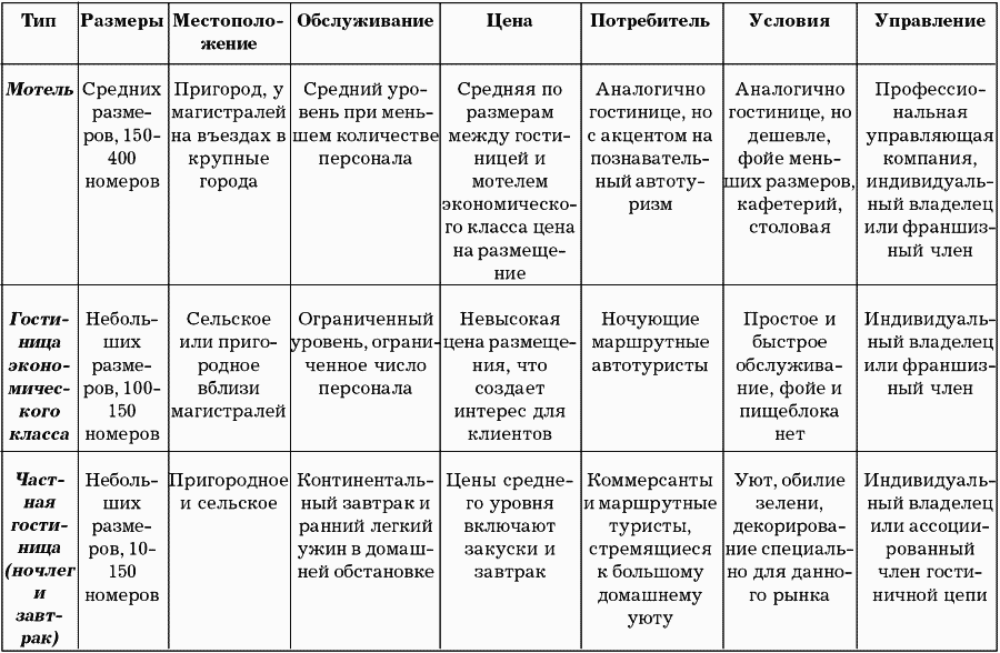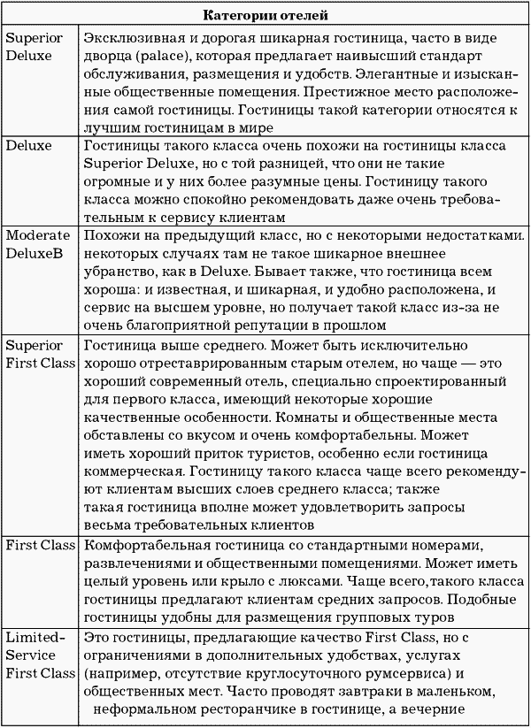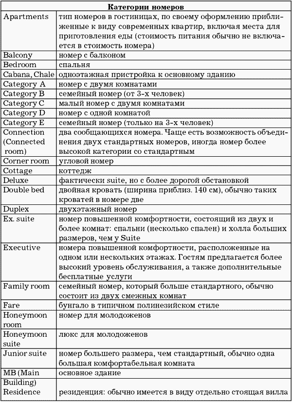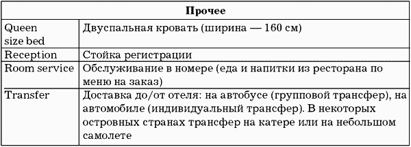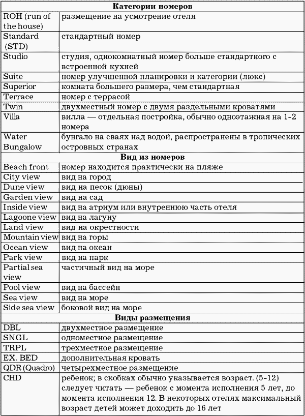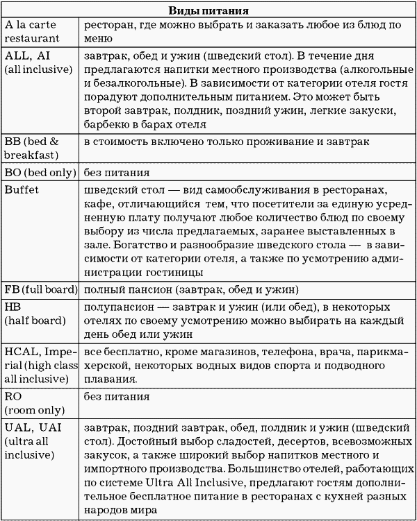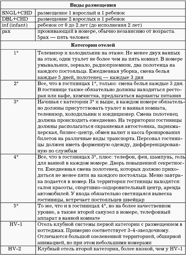 Таблица 4 Обозначения услуг размещения и питания, принятые в международной практике