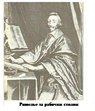 Вот в такой, прямо скажем, тяжелейшей обстановке для Франции и ее народа Людовик XIII назначает Ришелье «главным министром королевства». Ришелье много работает. Один из французских художников изобразил его за рабочим столом. Рассмотрим эту картину