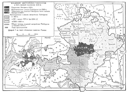 С 1516 г. императоры «Священной Римской империи» своей власти подчинили Германию, Австрию, Чехию, часть Венгрии, Испанию и ее колонии в Америке (см. карту).