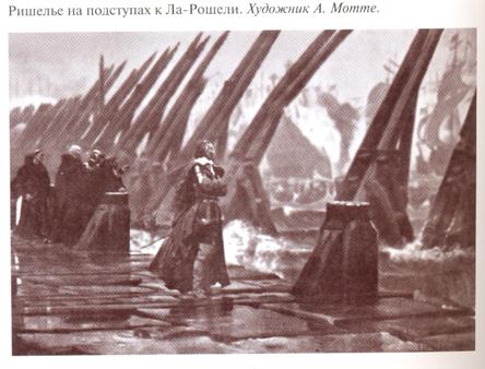 Опросы общественного мнения, проводимые во Франции, со всей определенностью показывают, что ныне живущее поколение французов помещает кардинала Ришелье в пятерку великих исторических деятелей своей страны в компании Людовика IX Святого (1214-1270, 1226-1270), Жанны Д’Арк (ок. 1412-1431), Людовика XIV (1638-1715, 1643-1715) и Наполеона I Бонапарта (1769-1821, 1799-1815). И это не случайно. И вот почему. Школьники, учащиеся колледжей и лицеисты с неподдельным интересом рассматривают картину, на которой изображен Ришелье, руководивший осадой (с 10 февраля по 28 октября 1628 г.) Ла-Рошели (оплота гугенотов) и наблюдавшего за своими пушками, поставленными на знаменитой плотине, которую он приказал построить, чтобы закрыть с моря вход в крепость английским кораблям, коих насчитывается 114. Совсем мало, чтобы поддержать гугенотов. Ришелье проявил отвагу. Ей тогда восхищались все – от забитых трудами крестьян и ремесленников до знаменитого маркиза Спинозы.