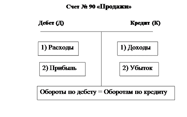 Рассмотрим их структуру на примере счета 90 «Продажи», представленной на схеме: