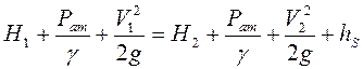 и отличаются они между собой очень незначительно. По этой причине в дальнейшем их можно не учитывать. Тогда уравнение Бернулли примет вид